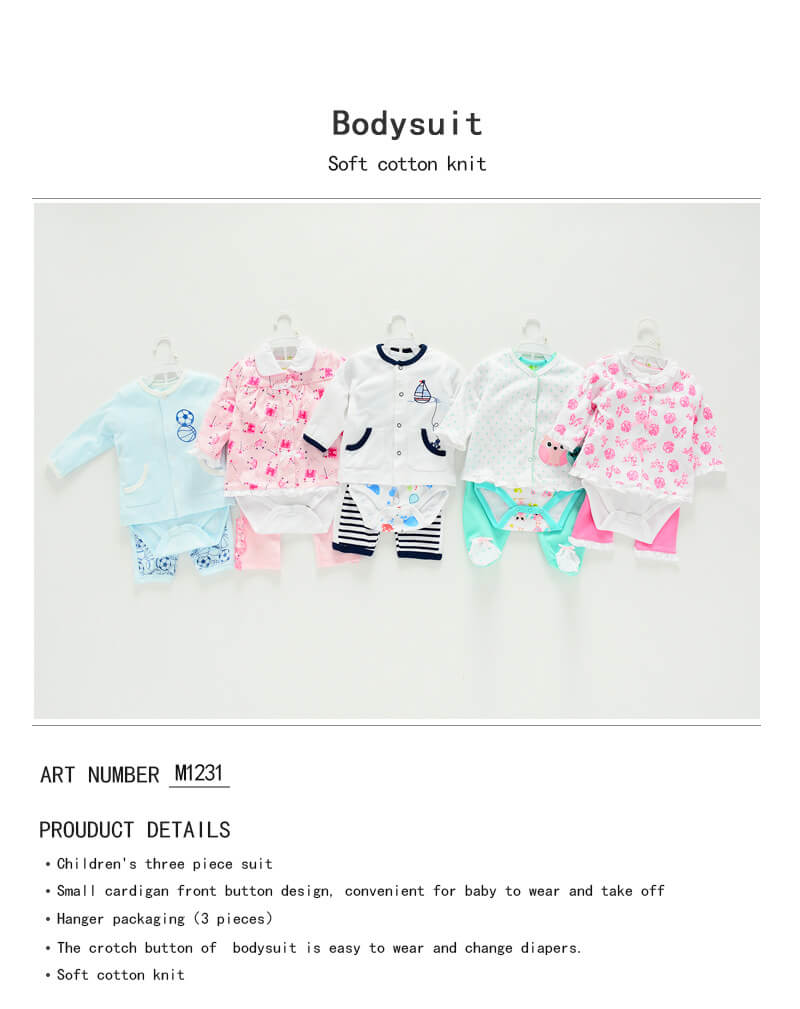 • 产品描述:Three-piece baby cardigan and romper Processing and manufacturing in Chinese factories, wholesale of finished products, customized clothing processing