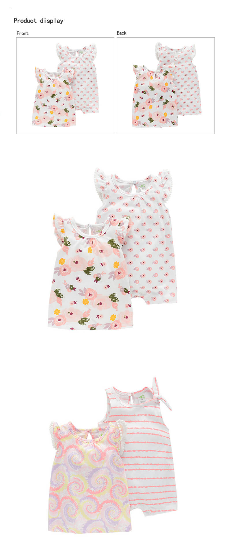 • 产品描述:Chinese factory produces and processes sleeveless rompers and skirts for infants and girls