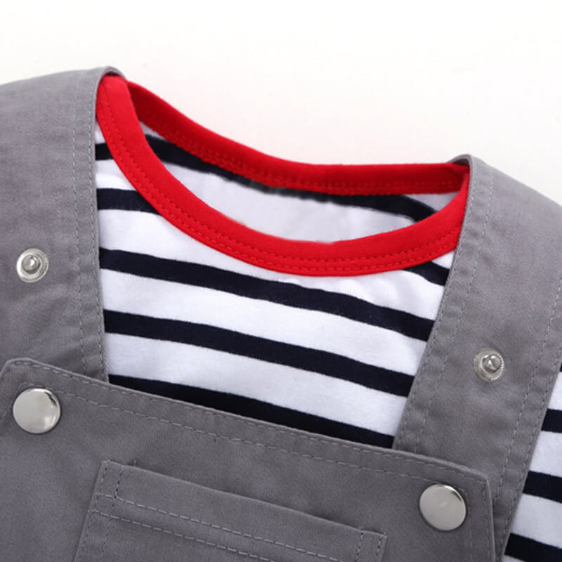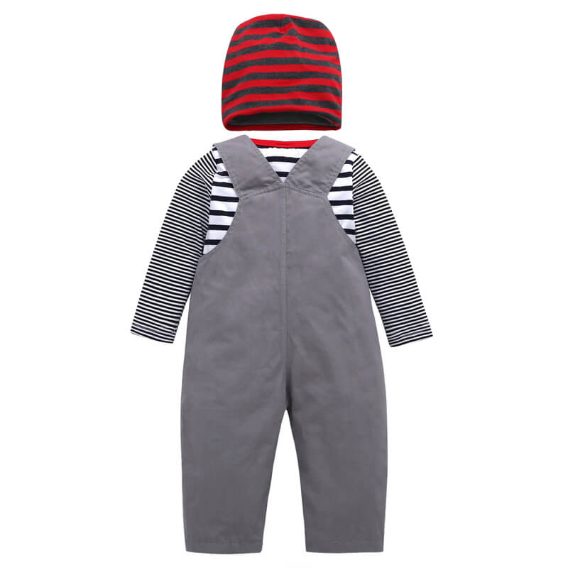 • 条纹哈衣+灰色背带裤3件套