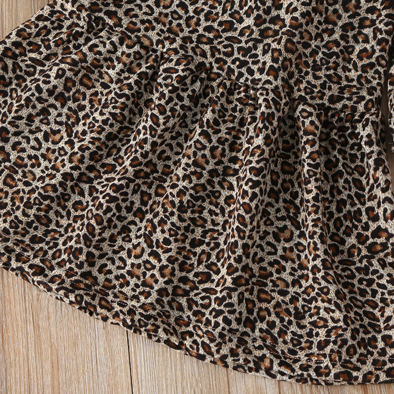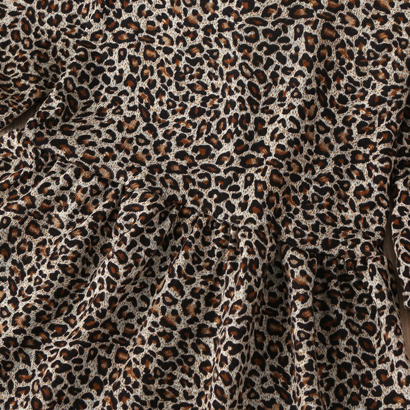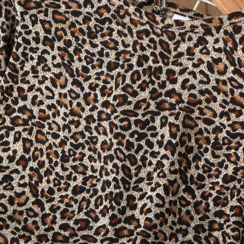 • Long sleeve round neck leopard print dress